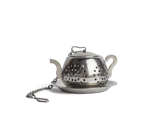 Tetera de borosilicato con tapa de acero inoxidable e infusor metálico removible para hebras.