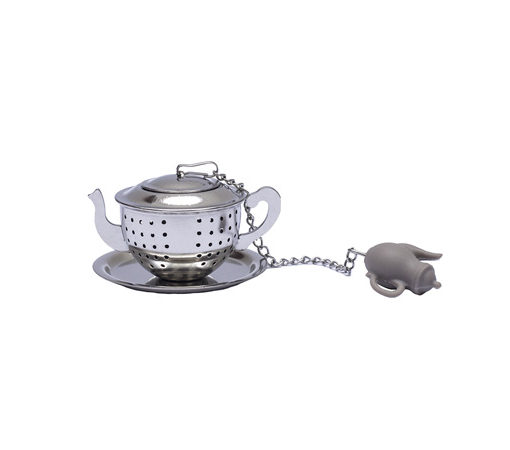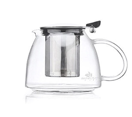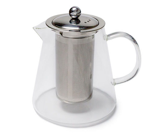 Tetera de borosilicato, con tapa de acero inoxidable e infusor metálico removible para hebras.