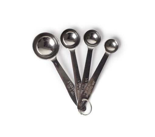 Juego de cuatro cucharas medidoras para té u otros usos en acero inoxidable.